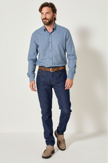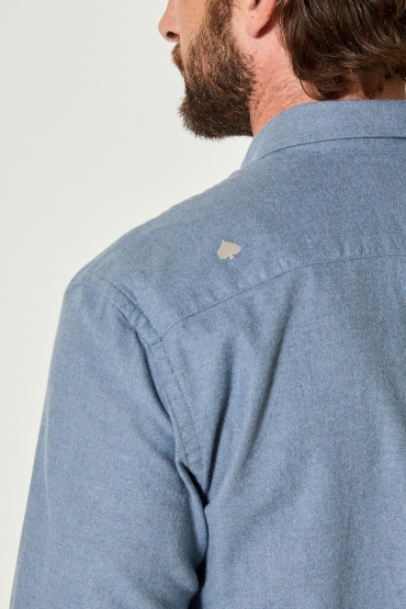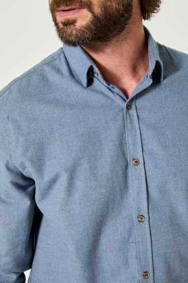• Chemise unie bleue en 100% coton flanelle