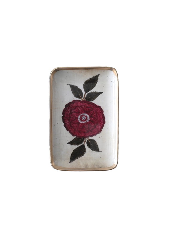 Petit plateau rectangulaire  « Pivoines » en aluminium émaillé par Boncoeurs.