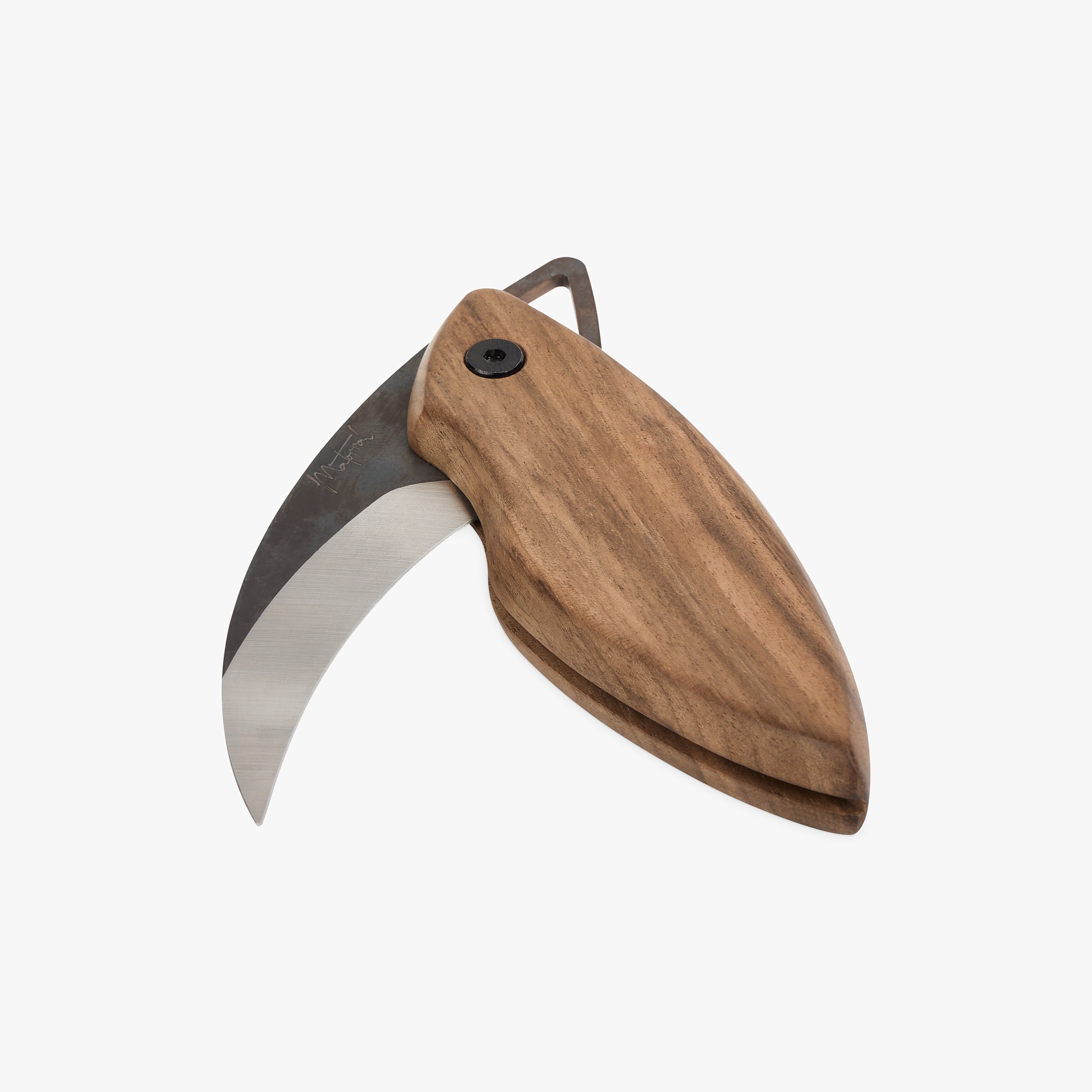 Longueur de l’émouture courbée 80 mm. - MANCHE: Noyer (Juglans regia).