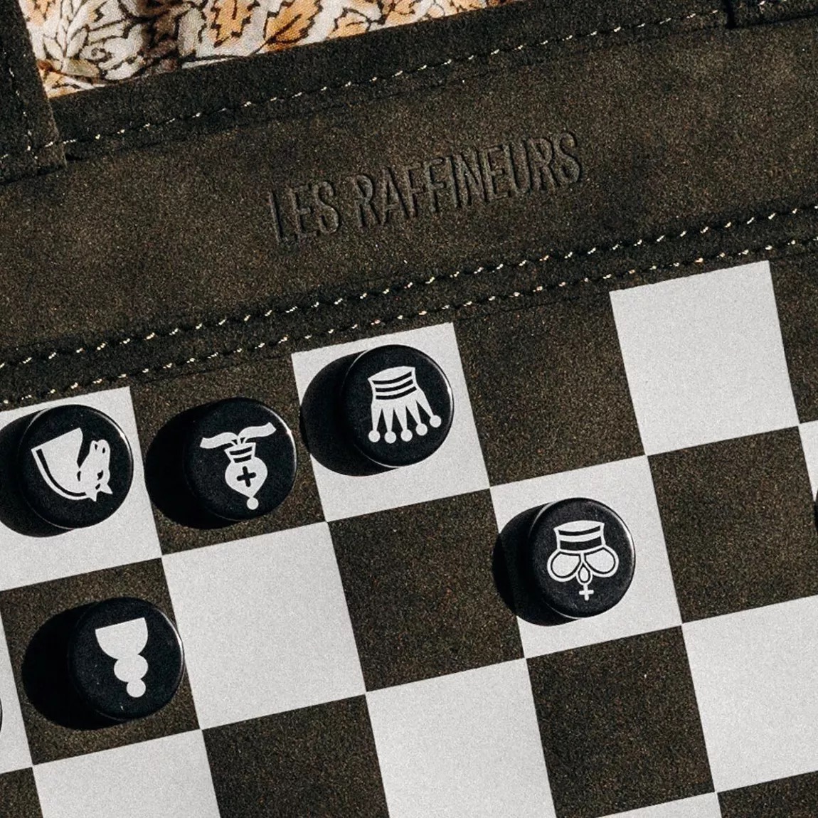 Un jeu d’échecs et de dames en velours au format voyage, à enrouler sur lui-même pour jouer là où le vent vous porte. Par Okuri, la collection d’objets pour faire battre les cœurs signée Les Raffineurs.