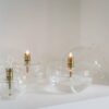 Le couvercle rond transparent en laiton est soufflé à la bouche et présente une forme minimaliste. Le couvercle arrondi capture la flamme et diffuse une lumière douce et concentrée.