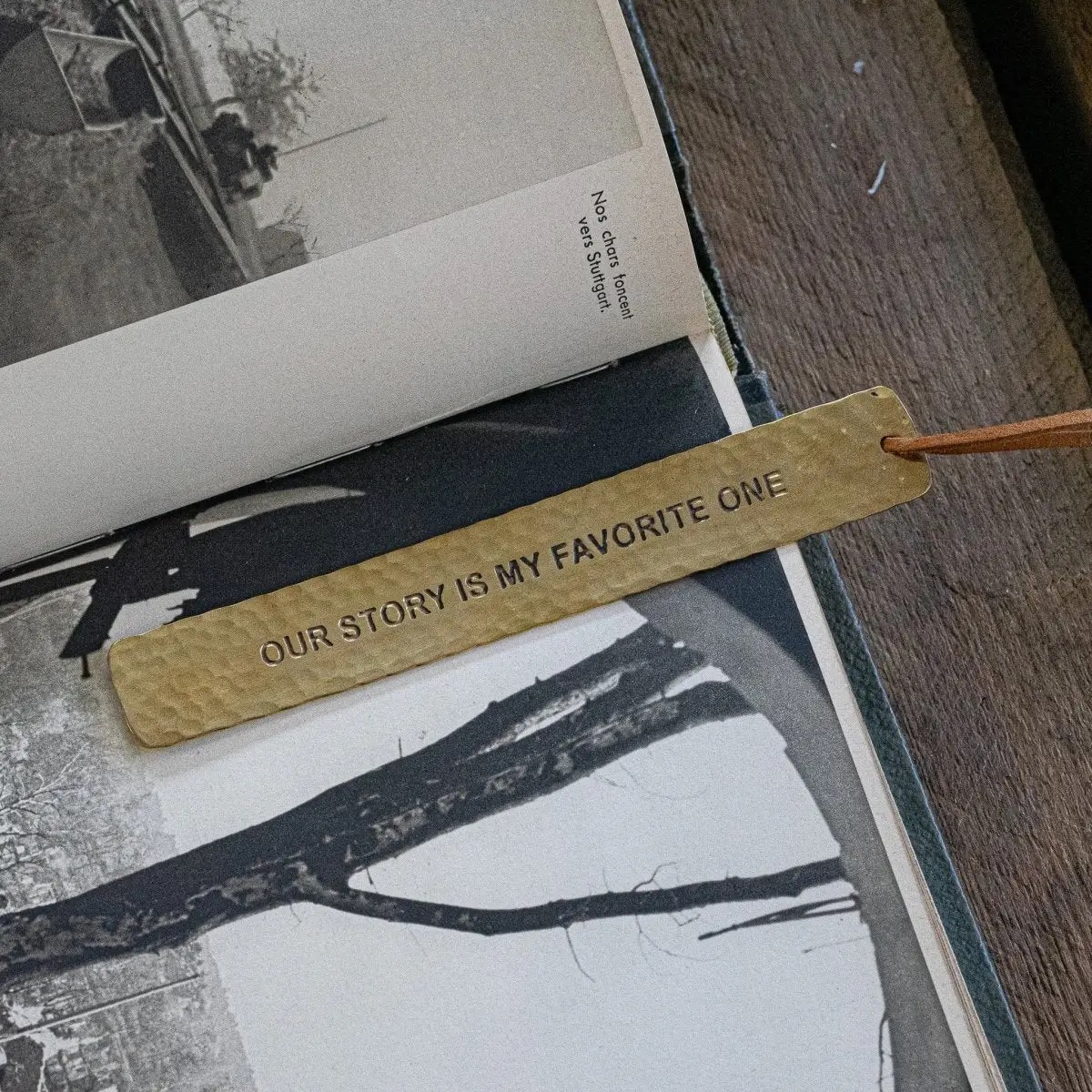 MARQUE PAGE en laiton doré martelé « Our story is my favorite one… »