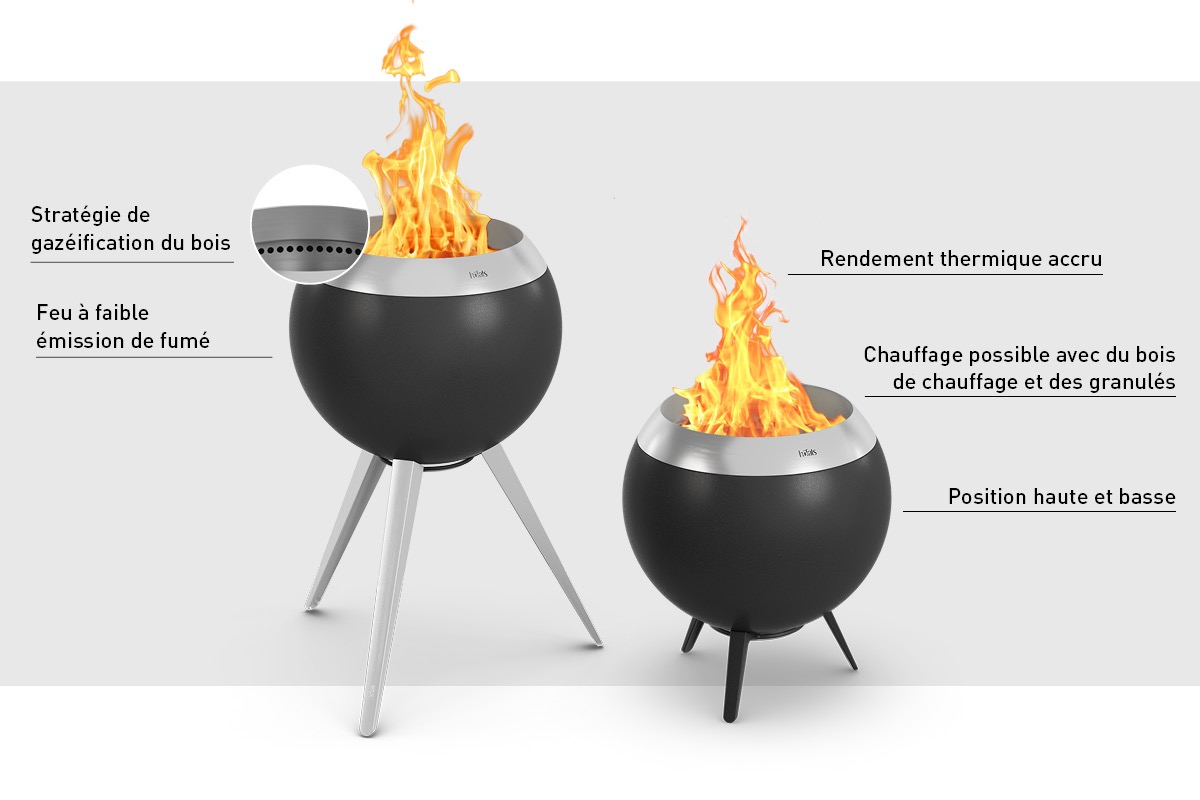 - Contenu de la livraison : MOON 45 bol extérieur et intérieur, grille de feu, bac à cendres, buse d’appoint, pied bas