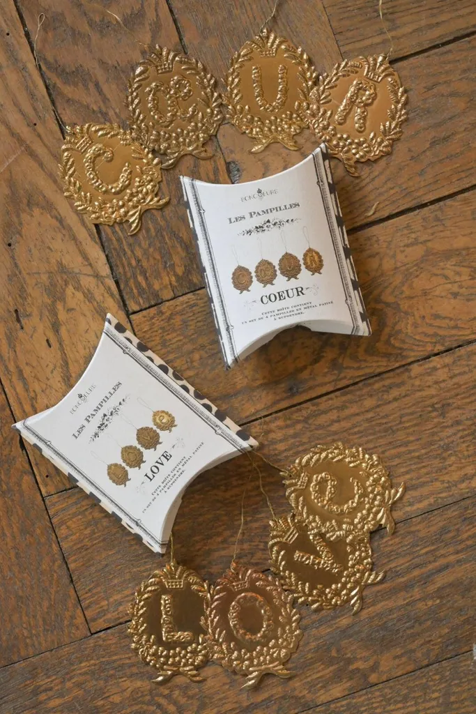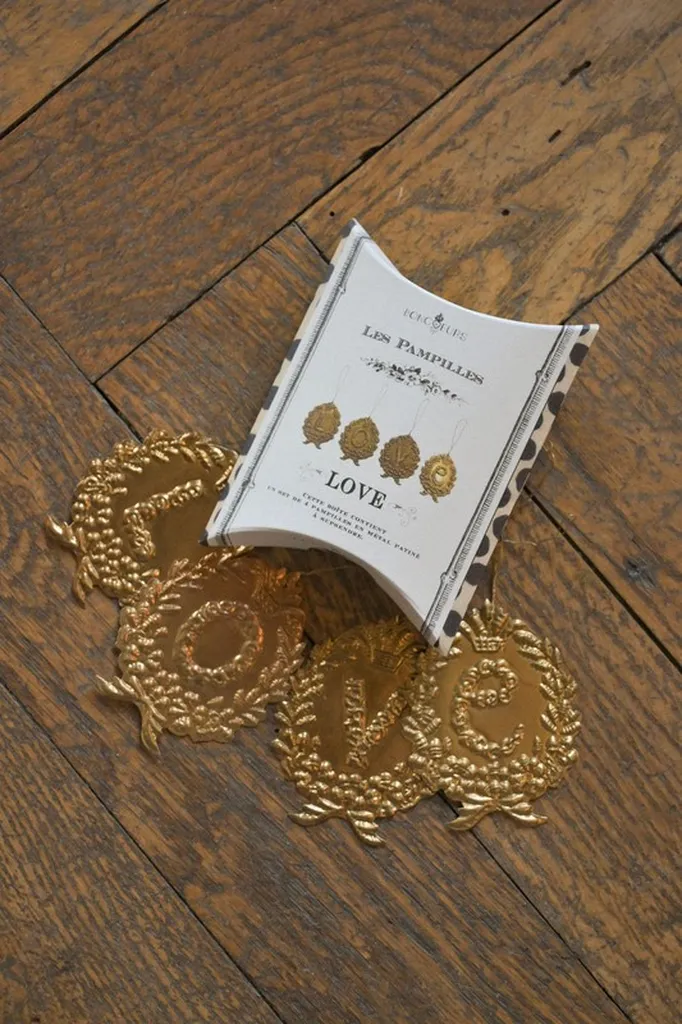 Inspirés des enluminures d’autrefois, les pampilles « LOVE » égayeront vos murs ou votre sapin de Noël.